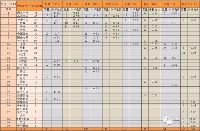 表三各企業(yè)中標(biāo)電價(jià)及規(guī)模匯總