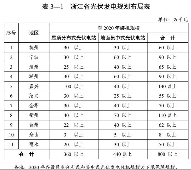 在浙江省太陽能發(fā)展“十三五”規(guī)劃中,浙江省重點任務是屋頂分布式光伏發(fā)電和地面集中式光伏發(fā)電,根據(jù)任務顯示,2020年浙江省光伏發(fā)電規(guī)劃將達到800萬千瓦以上。