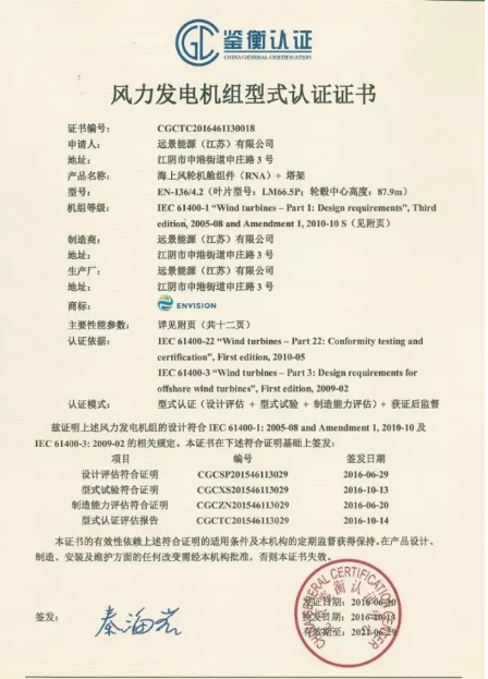 中國(guó)儲(chǔ)能網(wǎng)訊:近年來(lái),中國(guó)海上風(fēng)電風(fēng)生水起,業(yè)內(nèi)一直期待的一款真正適宜中國(guó)海上復(fù)雜多變環(huán)境的大功率型式A認(rèn)證機(jī)型終于來(lái)了——10月15日,全球領(lǐng)先的智慧能源技術(shù)公司遠(yuǎn)景能源的EN-136/4.2海上智能風(fēng)機(jī)獲得國(guó)內(nèi)權(quán)威認(rèn)證機(jī)構(gòu)鑒衡認(rèn)證中心頒發(fā)的首個(gè)海上型式A認(rèn)證證書。這對(duì)于中國(guó)海上風(fēng)電發(fā)展來(lái)說(shuō)具有風(fēng)向標(biāo)意義,意味著中國(guó)海上風(fēng)電在控制風(fēng)險(xiǎn)和保障收益的理性進(jìn)程中向前邁進(jìn)了一大步。