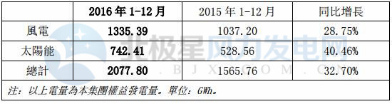 中國(guó)儲(chǔ)能網(wǎng)訊:協(xié)合新能源2016年完成發(fā)電量20.78億千瓦時(shí)(2077.80GWh),同比增長(zhǎng)32.70%。其中風(fēng)電發(fā)電量13.35億千瓦時(shí)(1335.39GWh),同比增長(zhǎng)28.75%。以下為具體數(shù)據(jù):