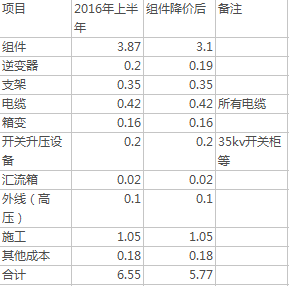 *此表顯示成本相對保守,其實(shí)在攢這些字的時(shí)候,組件已經(jīng)有2.8左右的報(bào)價(jià)了,有些EPC的系統(tǒng)成本已經(jīng)達(dá)到了5.2,但這個(gè)價(jià)格我是不敢“恭維”的。