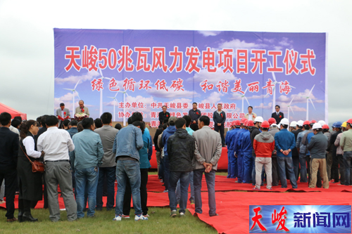 儀式上,由青海綠電集團(tuán)柴達(dá)木能源投資開發(fā)股份有限公司董事長(zhǎng)司榮國(guó)介紹項(xiàng)目情況;縣委副書記、縣長(zhǎng)楊有智致辭;縣委書記馬學(xué)太宣布“天峻縣快爾瑪50兆瓦風(fēng)力發(fā)電項(xiàng)目”開工。伴隨著開工的鞭炮、機(jī)器的轟鳴聲,領(lǐng)導(dǎo)和嘉賓們?yōu)轫?xiàng)目開工培土奠基。