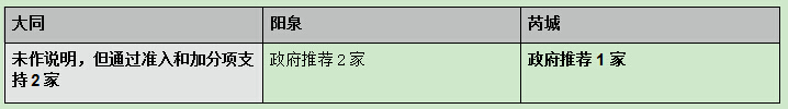 其實(shí)陽泉和芮城的做法也不錯(cuò),政府保留部分名額直接推薦照顧本土企業(yè),只要把好技術(shù)關(guān),本土企業(yè)同“外來和尚”一樣可以念好經(jīng)。