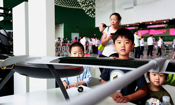漢能4.4米固定翼太陽能無人機吸引了眾多小朋友的目光