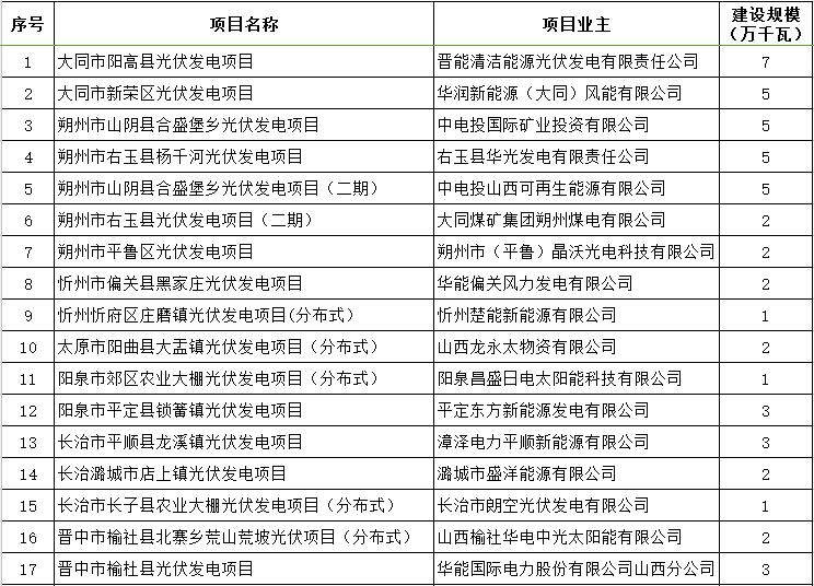 山西省2016年光伏發(fā)電建設(shè)實(shí)施方案明細(xì)表