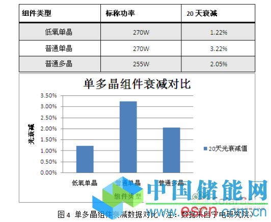 圖4 單多晶組件衰減數(shù)據(jù)對比(注:數(shù)據(jù)來自寧電研究院)