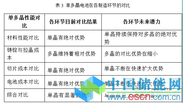 綜合上述對比,單晶電池與多晶電池在各制造環(huán)節(jié)的對比見下表: