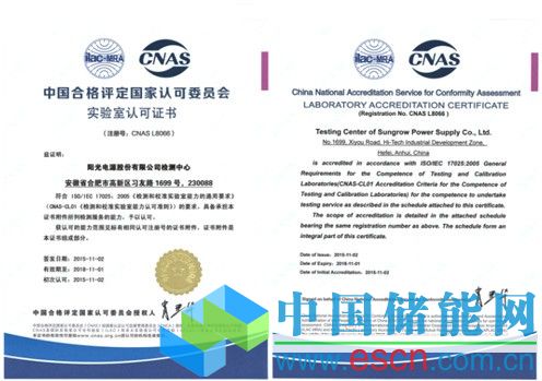 中國儲能網(wǎng)訊:日前,陽光電源股份有限公司檢測中心順利通過CNAS實驗室認可審查,獲得由中國合格評定國家認可委員會頒發(fā)的實驗室認可證書。