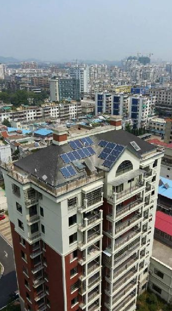 中國(guó)儲(chǔ)能網(wǎng)訊:近日,上饒市信州區(qū)某小區(qū)的公寓樓家庭光伏發(fā)電站并網(wǎng)運(yùn)行,該光伏發(fā)電站由國(guó)內(nèi)領(lǐng)先的分布式光伏系統(tǒng)服務(wù)商-晶科能源子公司晶科光伏承建,總裝機(jī)容量為5.3KW,20塊265W的晶科高效多晶組件沿屋頂鋪于11層樓高的公寓樓頂,藍(lán)色的方塊形成一道別具特色的風(fēng)景線。