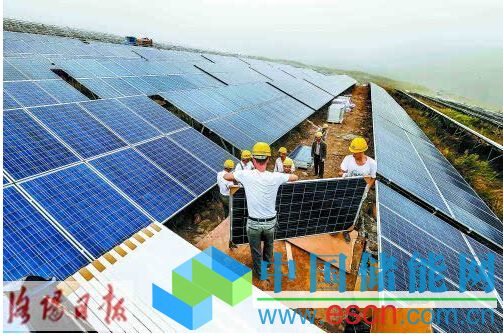 中國儲能網(wǎng)訊:昨日,記者在汝陽縣柏樹鄉(xiāng)一個荒山坡上看到,工人們正在協(xié)鑫50兆瓦光伏電站項目建設(shè)現(xiàn)場安裝太陽能光伏面板。