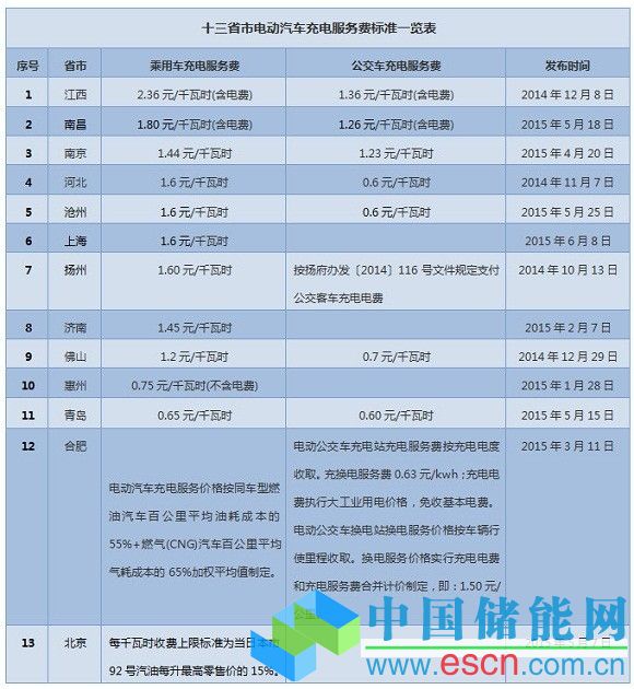 截止目前,已有北京、上海、江西等13個省市陸續(xù)出臺了充電服務費價格上限。具體如下: