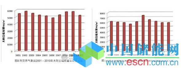 哈密屬于新疆的重點(diǎn)風(fēng)能、太陽能開發(fā)地區(qū)。太陽能資源較豐富,開發(fā)利用潛力大。哈密太陽輻射監(jiān)測(cè)站資料顯示(圖7),哈密地區(qū)年平均太陽能輻射總量6393MJ/m2。