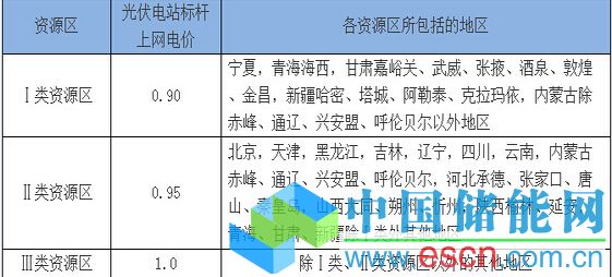 光伏電站:根據(jù)各地太陽能資源條件和建設(shè)成本,將全國分為三類太陽能資源區(qū),相應(yīng)制定光伏電站標桿上網(wǎng)電價。