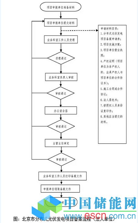 《北京市發(fā)展和改革委員會關(guān)于印發(fā)<北京市分布式光伏發(fā)電項目管理暫行辦法>的通知》(京發(fā)改規(guī)[2014]4號),規(guī)定了項目的備案流程。