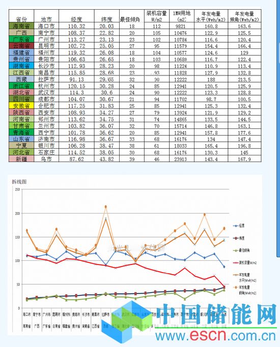 地面電站各地最佳傾角及MW用地面積實(shí)用表