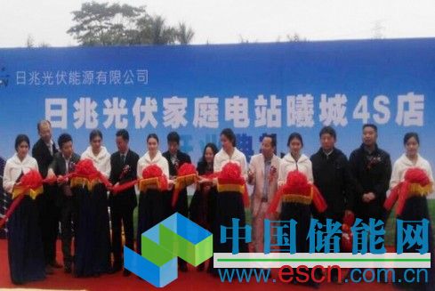 (圖片說(shuō)明:各界來(lái)賓和日兆科技公司領(lǐng)導(dǎo)共同為全國(guó)首家家庭光伏4S店剪彩)
