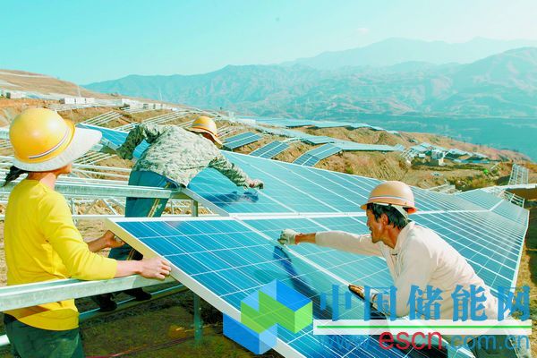 中國儲能網(wǎng)訊:1月6日,施工人員在鹽邊縣萬家山上安裝光伏發(fā)電站電池板。
