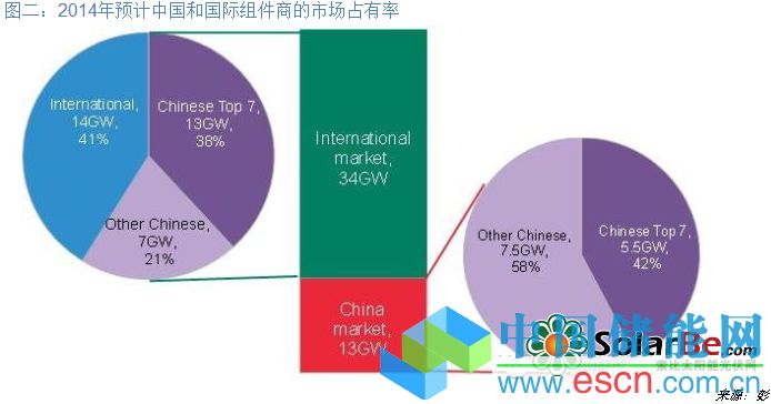 圖二:2014年預(yù)計中國和國際組件商的市場占有率來源:彭博新能源財經(jīng)