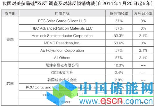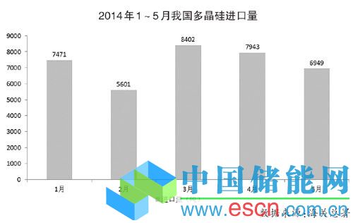 對歐多晶硅雙反出臺,多晶硅進口量并未減少。近日,我國發(fā)布了對歐多晶硅“雙反”調(diào)查終裁,自5月1日起實施,實施期限2年。對于瓦克的裁決借鑒了中歐光伏產(chǎn)品雙反調(diào)查的價格承諾措施,而瓦克占歐盟對我多晶硅出口的絕大部分,因此這項裁決對國內(nèi)多晶硅自歐盟進口影響有限。此外,2014年1月,我國發(fā)布了對美韓多晶硅反傾銷調(diào)查稅率及對美多晶硅反補貼調(diào)查稅率。對美國企業(yè)所征收的反傾銷稅率在53.3%~57%,韓國企業(yè)在2.4%~48.7%。盡管有反傾銷稅率,國外向我國進口多晶硅產(chǎn)品仍可以通過加工貿(mào)易的方式規(guī)避。據(jù)海關(guān)數(shù)據(jù),2014年4月我國多晶硅進口量為7943噸,其中通過加工貿(mào)易方式進口多晶硅量占比高達79.6%。因此,總體來看,我國多晶硅進口量并未減少。2014年1~5月,我國多晶硅進口量達到3.64萬噸,同比增長6%,主要來自美韓德等國,占比分別為22.3%、28.5%與32.4%。