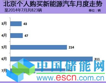中國儲能網(wǎng)訊:截至7月,北京市個人購買新能源汽車上牌數(shù)823位,呈逐月上升趨勢。在9月1日免征購置稅政策生效之后,上牌數(shù)將“爆發(fā)”。