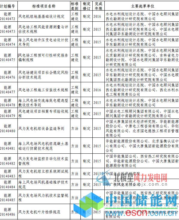 38項風(fēng)電行業(yè)標(biāo)準(zhǔn)制定計劃詳情: