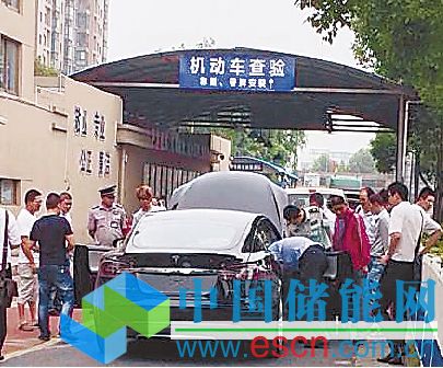 中國儲能網(wǎng)訊:“特斯拉上牌了,攝于杭州古墩路車管所?!弊蛱焐衔缇W(wǎng)友“白開水77”在微博上發(fā)了這條消息,并附上了“特斯拉”的三張私房靚照。