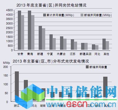 數(shù)據(jù)顯示,截至2013年底,全國(guó)22個(gè)主要?。ㄗ灾螀^(qū)、直轄市)已累計(jì)并網(wǎng)741個(gè)大型光伏發(fā)電項(xiàng)目,主要分布在我國(guó)西北地區(qū)。累計(jì)裝機(jī)容量排名前三的省份分別為甘肅省、青海省和新疆自治區(qū),分別達(dá)到432萬千瓦、310萬千瓦和257萬千瓦,三?。▍^(qū))之和超過全國(guó)光伏電站總量的60%。