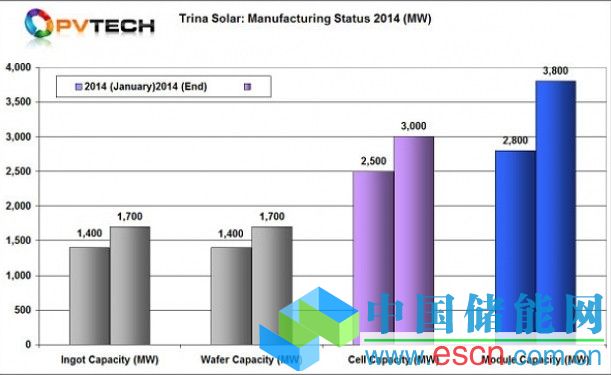 該公司此前在其最近的2013年第四季度收入電話會(huì)議上預(yù)計(jì)產(chǎn)能擴(kuò)張,其中包括到今年年底,將硅錠或硅片的產(chǎn)量提高到1.7GW,電池產(chǎn)量提高到3GW,組件產(chǎn)量提高到3.8GW。