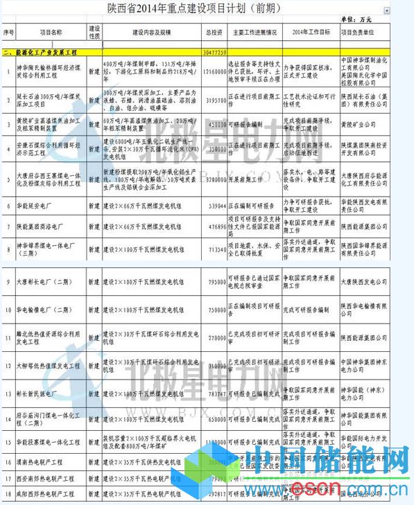 中國(guó)儲(chǔ)能網(wǎng)訊:從陜西省發(fā)改委網(wǎng)站獲悉:《陜西省2014年重點(diǎn)建設(shè)項(xiàng)目計(jì)劃》透露出大概的范圍和方向?!队?jì)劃》初步建議2014年陜西省重點(diǎn)建設(shè)項(xiàng)目個(gè)數(shù)370個(gè),總投資2.06萬(wàn)億元,年度投資2544億元,其中,續(xù)建項(xiàng)目155個(gè),新開工項(xiàng)目65個(gè),還有150項(xiàng)前期項(xiàng)目。