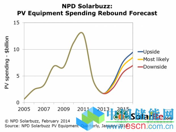 此次擴(kuò)張正在由中國(guó)、日本、美國(guó)及正在大規(guī)模新增光伏安裝項(xiàng)目兆瓦數(shù)的全球越來(lái)越多的新興市場(chǎng)的強(qiáng)勁需求所推動(dòng)。NPD Solarbuzz與的德意志銀行(Deutsche Bank)最近的幾份報(bào)告表明,2014年全球終端市場(chǎng)需求達(dá)到50GW左右,較2013年早期評(píng)估的36GW大幅提高。