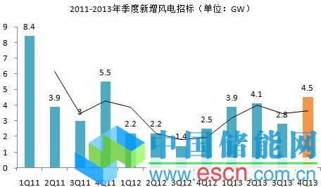 根據(jù)統(tǒng)計(jì),2013年前三季度國(guó)內(nèi)新增風(fēng)電項(xiàng)目招標(biāo)約為11GW,加上第四季度新增風(fēng)電項(xiàng)目招標(biāo)的4.5GW,全年新增風(fēng)電招標(biāo)超過(guò)了15.5GW,這和去年新增風(fēng)電招標(biāo)的8.3GW相比,出現(xiàn)了近乎翻番的增長(zhǎng)。