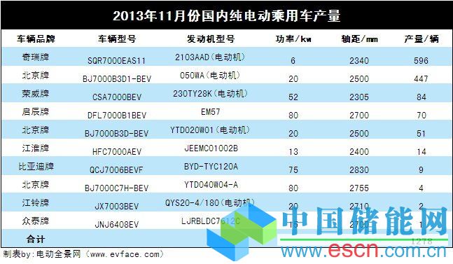 中國(guó)儲(chǔ)能網(wǎng)訊:2013年11月份國(guó)內(nèi)純電動(dòng)乘用車產(chǎn)量是1278輛,與今年10月份692輛相比,環(huán)比增長(zhǎng)84.68%,也是今年以來國(guó)內(nèi)純電動(dòng)乘用車產(chǎn)量最高的的月份。