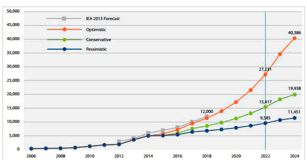 圖:光熱發(fā)電裝機預測(來源:CSPToday)