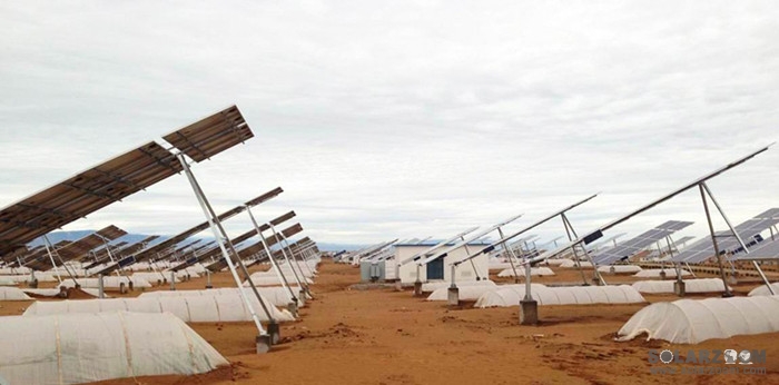 當地項目運營方透露說,在沙漠上建設光伏電站是對人類的一個巨大考驗,自然條件惡劣,沙塵暴天氣的干擾,沙漠的打樁問題都是非常嚴重的挑戰(zhàn),尤其是在前期缺水少電的施工期,施工艱難程度是外界難以想象的。