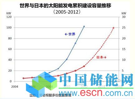 中國(guó)儲(chǔ)能網(wǎng)訊:隨著可再生能源發(fā)電固定價(jià)格收購(gòu)制度于2012年7月開(kāi)始實(shí)行,日本的太陽(yáng)能發(fā)電終于又恢復(fù)了以往的迅猛勢(shì)頭。2012年新增太陽(yáng)能發(fā)電裝機(jī)容量達(dá)200萬(wàn)千瓦,是上年的2倍。2013年預(yù)計(jì)還將增長(zhǎng)2.5倍,達(dá)到500萬(wàn)千瓦。如果維持這一勢(shì)頭,全年新增裝機(jī)容量有望達(dá)到世界第二。鑒于第一的熱門(mén)候選中國(guó)正在放慢速度,也有看法認(rèn)為,日本將一舉奪下冠軍寶座。