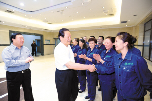 周永康慰問新疆電力公司員工。