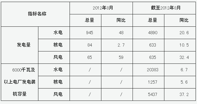 2012年8月我國可再生能源發(fā)電利用情況一覽