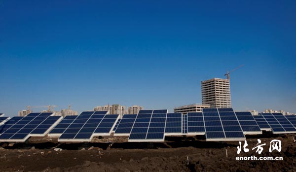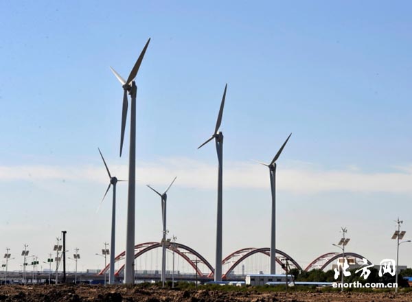 生態(tài)城建成和在建的可再生能源設(shè)施投資約8億元,共分為太陽能發(fā)電、風(fēng)電、風(fēng)電互補(bǔ)路燈、水源熱泵、深層地?zé)帷⑼寥涝礋岜?、太陽能熱水等七類,總?jì)提供電能約1900萬千瓦/年和熱能約44.6萬GJ/年,折合成標(biāo)煤為22818.6噸。其中,薊運(yùn)河河口風(fēng)電和服務(wù)中心停車場光伏項(xiàng)目并網(wǎng)發(fā)電6個(gè)月以來,已經(jīng)發(fā)電180余萬度。