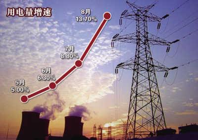 中國儲能網(wǎng)訊:日前,國家能源局發(fā)布8月份全社會用電量數(shù)據(jù)。數(shù)據(jù)顯示,8月份,全社會用電量5103億千瓦時,同比增長13.7%,增速連續(xù)4個月回升,并創(chuàng)下25個月新高。分析人士普遍認為,這意味著宏觀經(jīng)濟企穩(wěn)向好的態(tài)勢確立。數(shù)據(jù)顯示,中國發(fā)電量在2011年已經(jīng)超越美國,躍居世界第一。而8月份用電量及發(fā)電量突破5000億千瓦大關(guān),這在全球也是第一次。