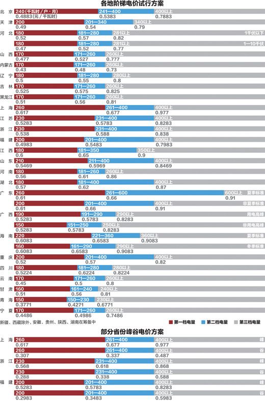 除新疆、西藏外,居民階梯電價制度將覆蓋中國大部分省份。截至1日下午,除安徽、貴州、湖南、陜西尚在籌備外,25個省份開始全面試行這一制度。