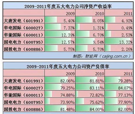 2011年,除了國(guó)電電力(600795,股吧)外,其余四家電力公司凈利潤(rùn)均出現(xiàn)大幅下滑。2011國(guó)電電力凈利潤(rùn)36.5億元,同比增長(zhǎng)50.14%,遠(yuǎn)高于2010年-2.71%的增長(zhǎng)率,但公司2012年一季度凈利潤(rùn)增長(zhǎng)率再度轉(zhuǎn)負(fù),跌至-42.35%。