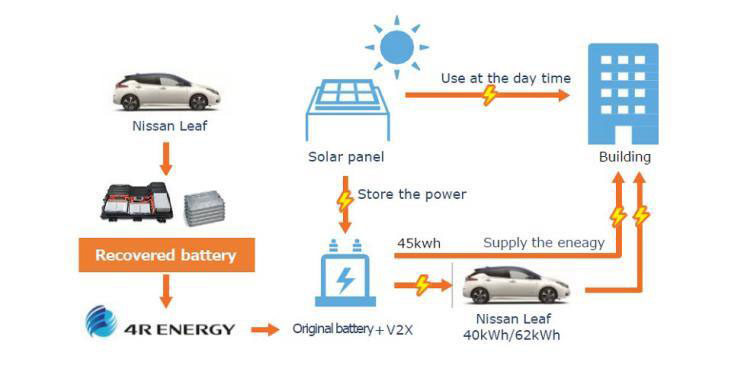 在過去的兩年中,日本有超過800萬戶家庭因自然災(zāi)害而斷電。日產(chǎn)汽車為應(yīng)對這種大面積斷電情況,開發(fā)了一種使用車輛到電網(wǎng)技術(shù)的系統(tǒng),該系統(tǒng)允許客戶使用聆風(fēng)的動(dòng)力電池組為建筑物供電。自2019年9月以來,日產(chǎn)已經(jīng)研發(fā)出利用舊的聆風(fēng)電池組改造為固定式儲(chǔ)能單元,并存儲(chǔ)再生能源,以日本神奈川縣的部分7-11便利店作為試點(diǎn),驗(yàn)證該系統(tǒng)的應(yīng)急供電能力。