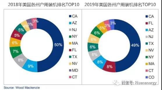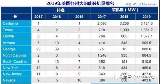 2019年對美國戶用太陽能來說意義重大。除了太陽能安裝總量創(chuàng)下歷史新高外,2019年戶用太陽能安裝總量排名也出現(xiàn)了變化,反映出戶用太陽能應(yīng)用的地域多樣性有所增加。