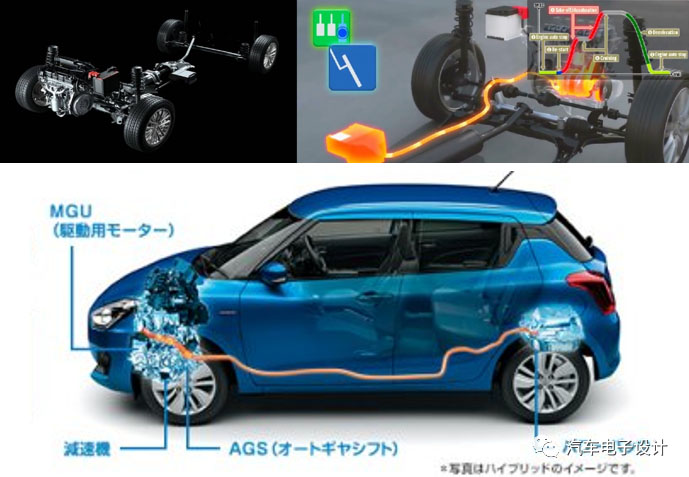 這套系統(tǒng)其實與鈴木之前發(fā)布的48V中混系統(tǒng)比較相似(Swift Sport,Vitara和S-Cross),猜測與歐洲車企大力打造豪華版的48V系統(tǒng)不同,日系小車都在默默鋰電化,已經(jīng)開始普遍在低成本的車型上加上了中混,對于這類小車的效果還是不錯的。