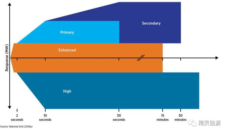 在這方面,英聯(lián)邦的系統(tǒng)運(yùn)營商國家電網(wǎng)開發(fā)了EFR相關(guān)產(chǎn)品,也可定義為一種動態(tài)服務(wù),這種EFR產(chǎn)品的功率可隨著系統(tǒng)頻率的變化而成比例地變化。EFR服務(wù)是專門為能量存儲而創(chuàng)建的,一旦頻率超過閾值(可以是“0.05赫茲”(服務(wù)1,寬帶)或“0.015赫茲”(服務(wù)2,窄帶),則需要在1秒內(nèi)作出響應(yīng)。