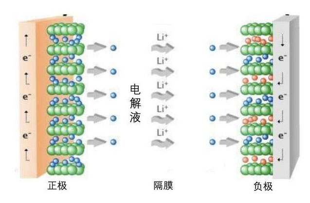 傳統(tǒng)鋰電池電池由正極、負極、液態(tài)電解液以及隔膜組成,電池充放電時,鋰離子會在正負之間來回往返擺動,而液態(tài)的電解液作為鋰離子往返的媒介。
