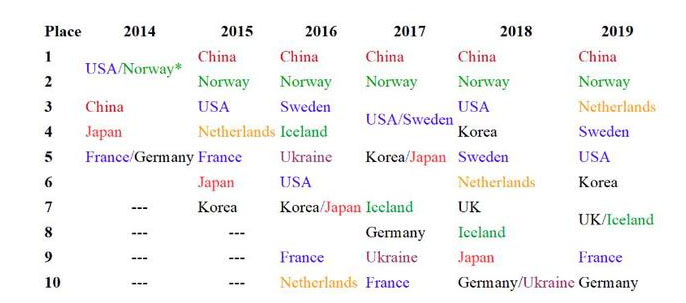 第7、8名:英國、冰島并列(2018年分別第七和第八),46分。