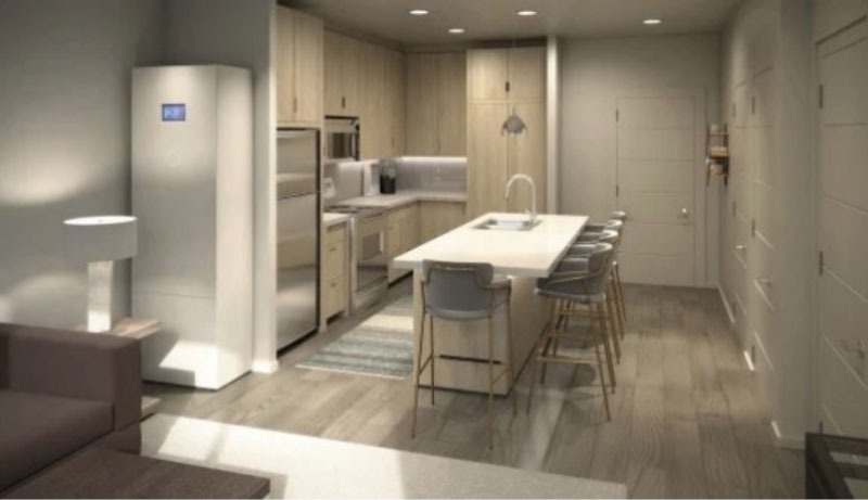 但是Soleil Lofts項(xiàng)目的獨(dú)特之處在于,開(kāi)發(fā)商經(jīng)過(guò)精心設(shè)計(jì),將電池儲(chǔ)能系統(tǒng)部署每套公寓中(有些公寓面積很小),而不是部署在專(zhuān)用的空間。