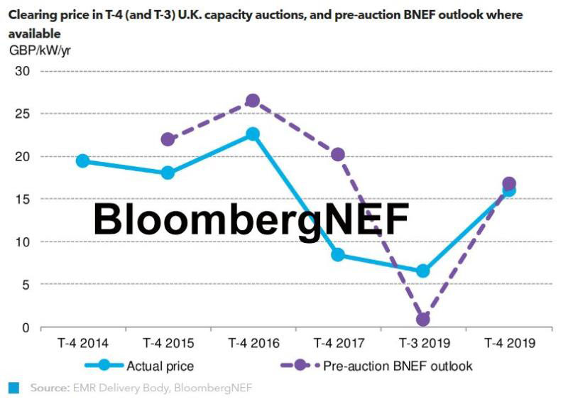 2019年英國(guó)T-4容量競(jìng)價(jià)出清價(jià)格為15.97英鎊/千瓦(以2018/19年價(jià)格為基準(zhǔn)),逆轉(zhuǎn)容量?jī)r(jià)格走低的趨勢(shì)。BNEF認(rèn)為,此次競(jìng)價(jià)與與先前兩次大型競(jìng)價(jià)形成鮮明對(duì)比,容量?jī)r(jià)格兩年來(lái)首次真實(shí)地反映了電站的經(jīng)濟(jì)性,而在此前兩次大型競(jìng)價(jià)中,電站運(yùn)營(yíng)商人為降低報(bào)價(jià),不惜一切代價(jià)換取成交,指望“未來(lái)”競(jìng)價(jià)的出清價(jià)格升高,以彌補(bǔ)運(yùn)營(yíng)費(fèi)用和過(guò)往的損失。如此看來(lái),容量競(jìng)價(jià)的“未來(lái)”已來(lái)。