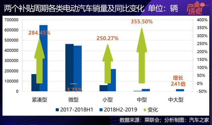 撬動中國電動汽車市場結(jié)構(gòu)變化的最直接因素是補貼導(dǎo)向,2018年6月12日是一個分水嶺,觀察這一時間點前后電動市場結(jié)構(gòu)的變化,可以清晰地發(fā)現(xiàn)補貼越高的車型類別,漲幅越大,2019年補貼更優(yōu)待的緊湊車型和小型車市場份額走高。這個結(jié)構(gòu)演變趨勢在補貼一旦退出之后,會不會繼續(xù)?價格將是重要的影響因素之一。